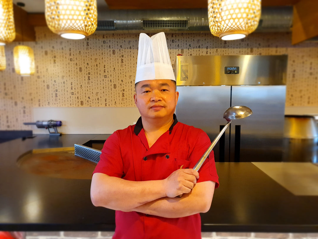 Das ist Meister Zhao, unser Diensältester und Veteran der chinesischen Küche. Er arbeitete schon mehr als 6 Jahre in Deutschland in Top China Restaurants und betrieb zuvor seine eigene kleine Gaststätte in seinem Heimatort im Norden Chinas, in der nähe von Harbin. Er kocht schon seit bereits mehr als 20 Jahren und kennt sich bestens mit der chinesischen Küche aus.